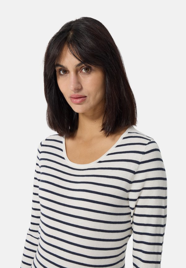 RUNDHALS GESTREIFT – Strickpullover – weiss und marine blau