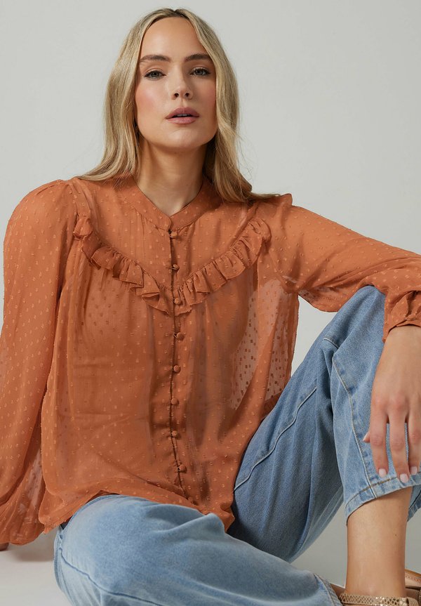 SHEER DOBBY FRILL – Hemdbluse – coral