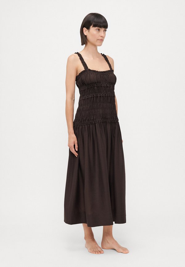 SMOCKED MIDI DRESS – Strandaccessoire – deep chocolate