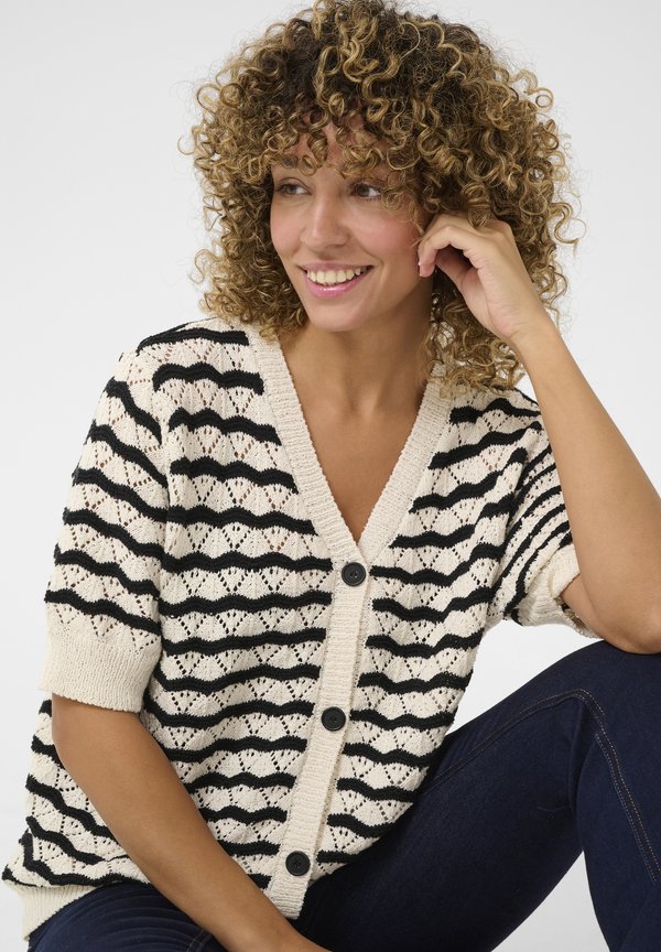Strickjacke – salt pepper stripe