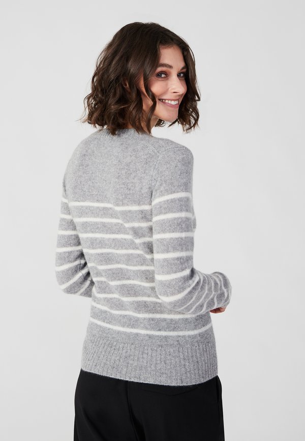 | Color | grey white stripes |