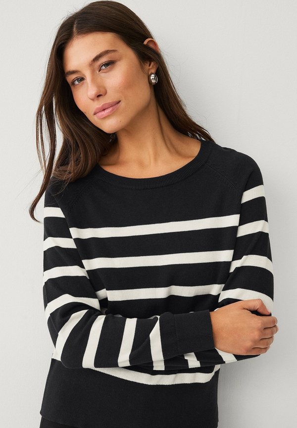 Strickpullover – schwarz cremeweiß gestreift