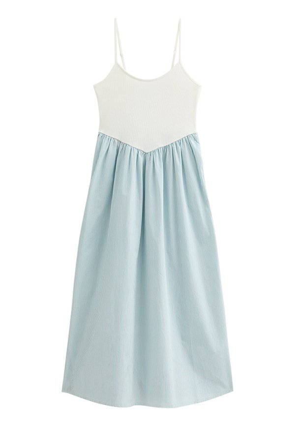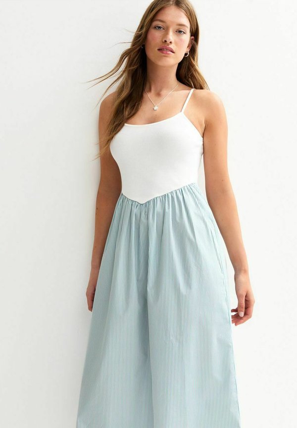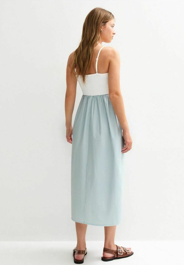 STRIPE PRINT V WAIST POPLIN MIDI – Freizeitkleid