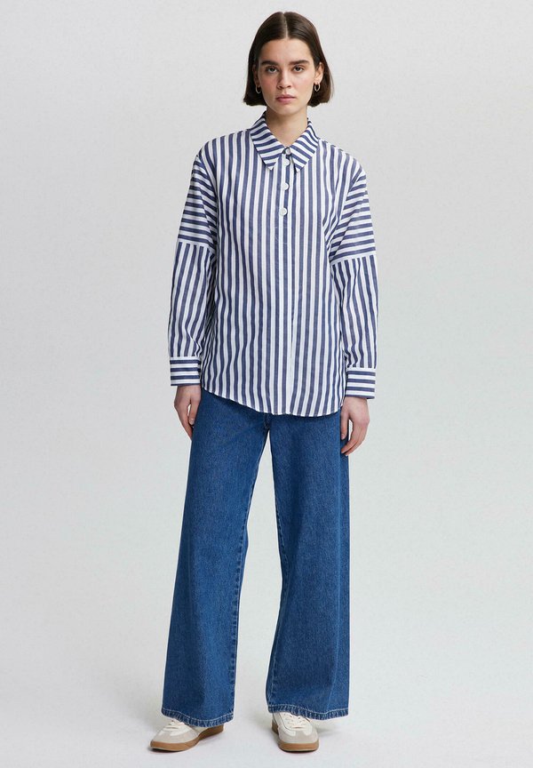 STRIPED WITH BUTTON DETAIL – Bluse