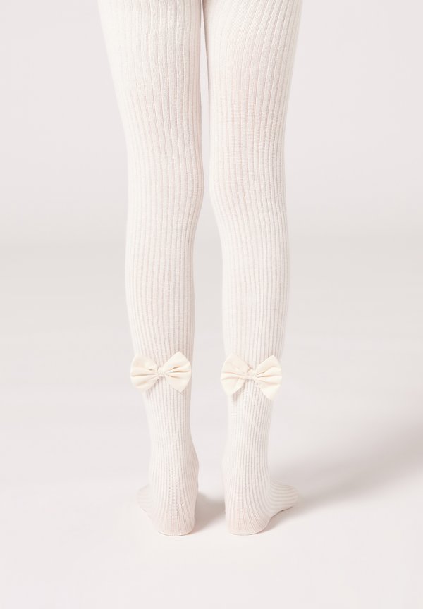 Strumpfhose – ivory ribbed with bow
