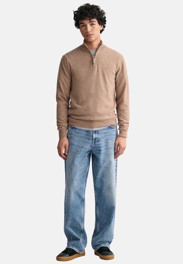 SUPERFINE HALF-ZIP – Strickpullover – dk sand melange