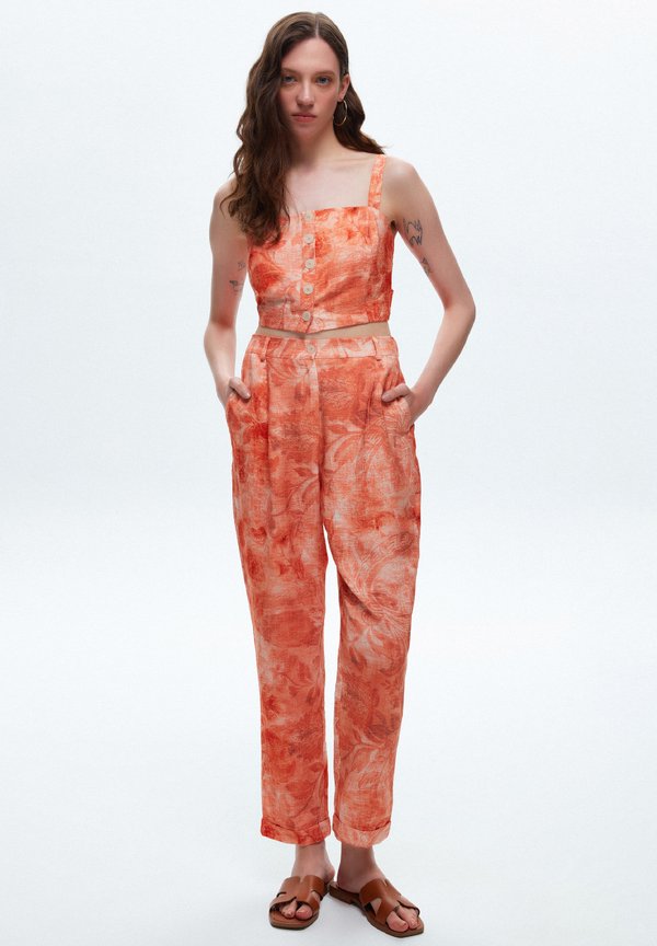 TASSEL DETAILED PATTERNED CROP – Bluse – patterned orange