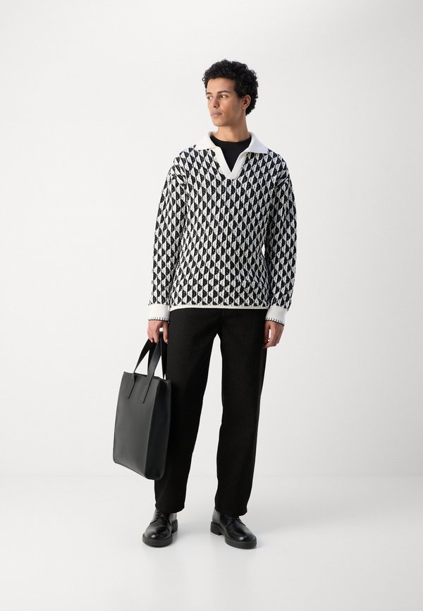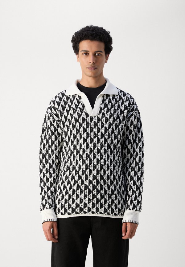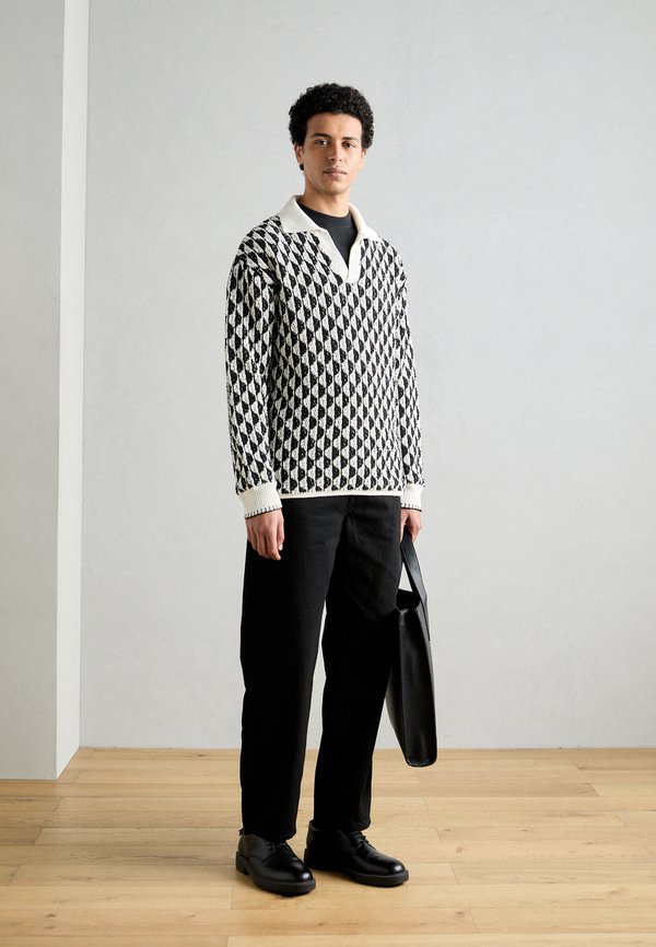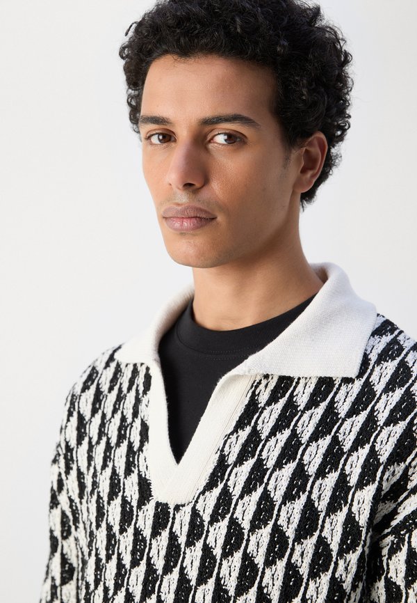 TEXTURED DROPPED SHOULDER LONG SLEEVE POLO – Strickpullover
