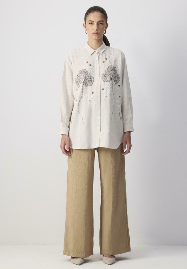 TEXTURED EMBROIDERED – Hemdbluse – natural
