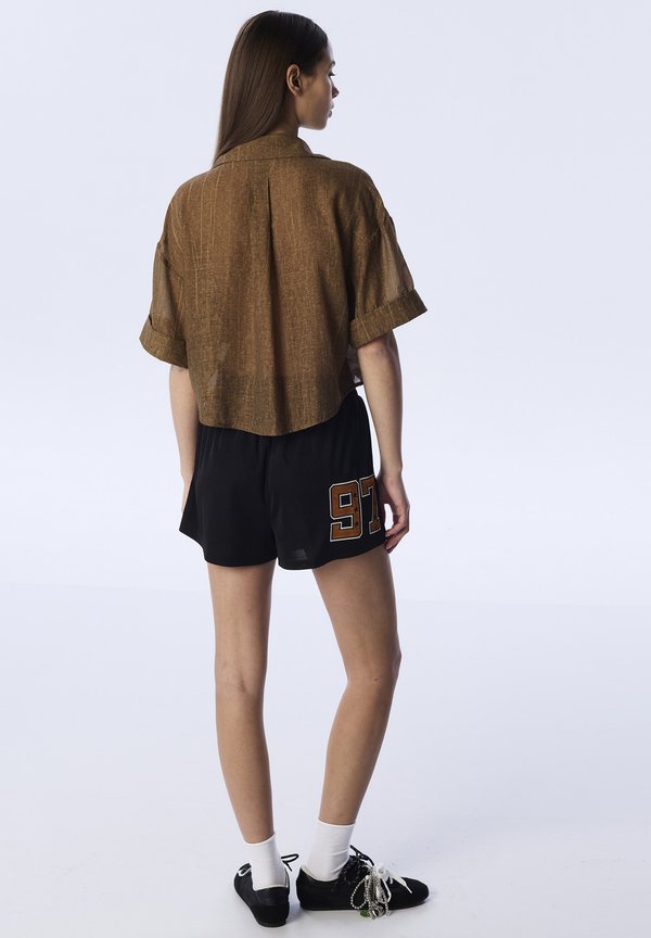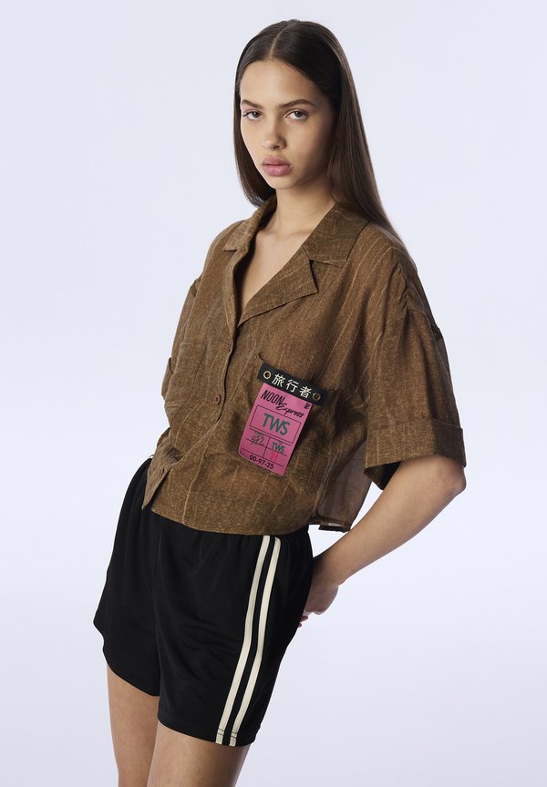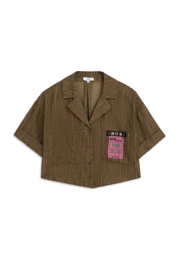 TEXTURED PATCHED CROP – Hemdbluse