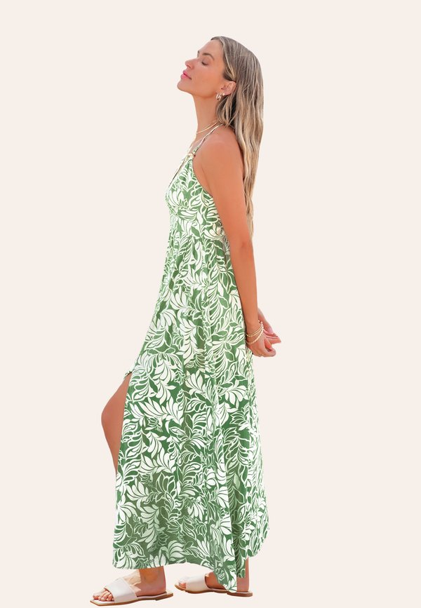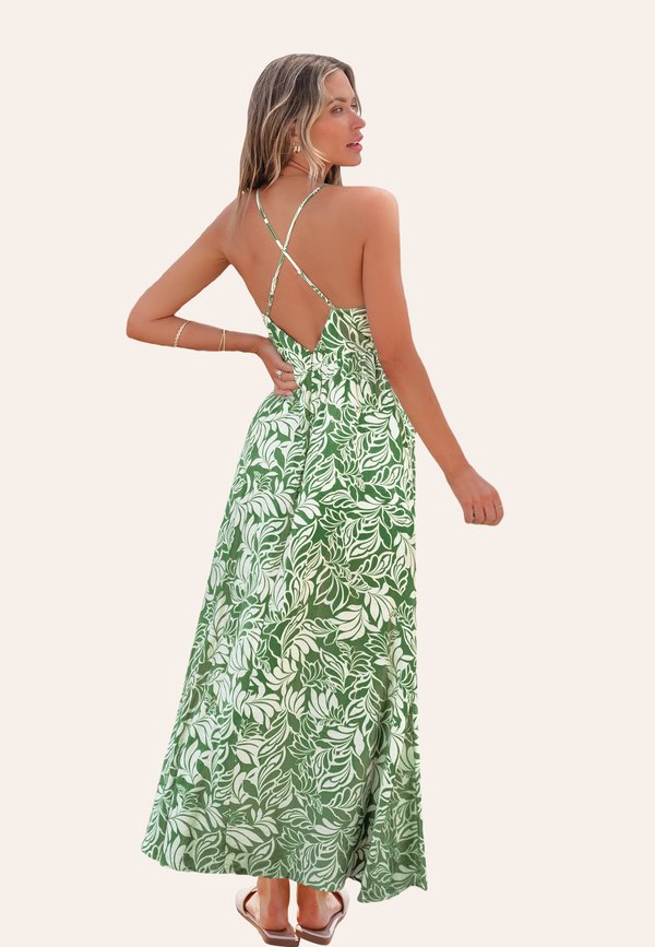 TROPICAL LEAF PLUNGING – Maxikleid