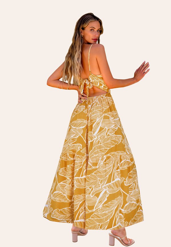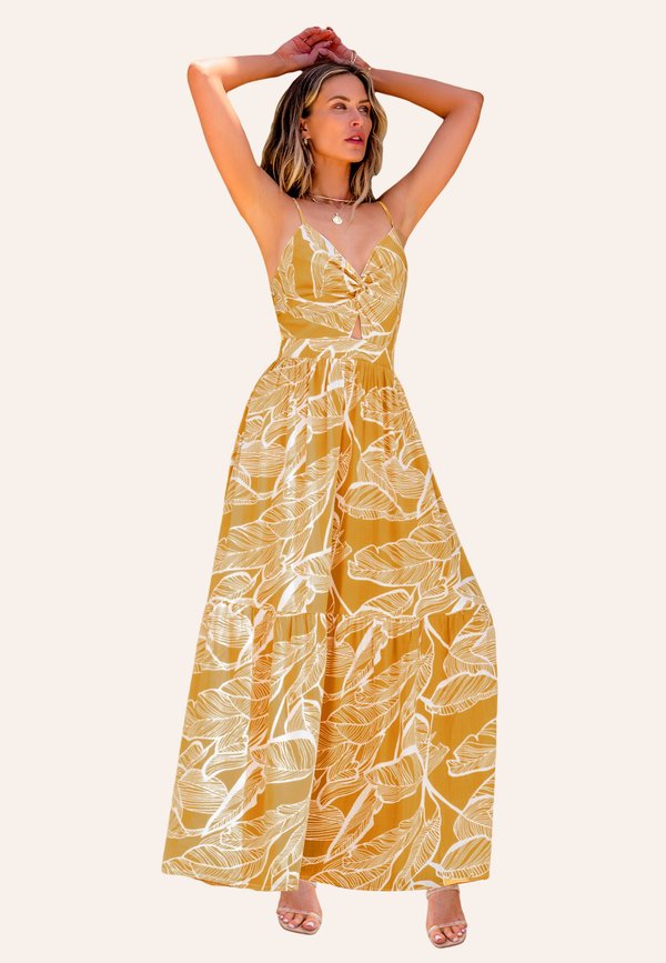 TROPICAL LEAF PLUNGING NECKLINE – Maxikleid