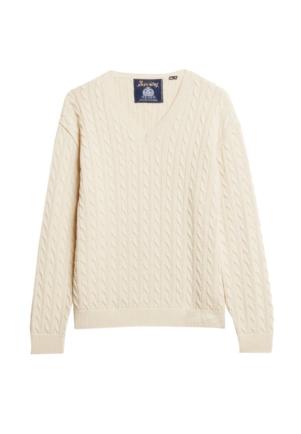 V NECK CABLE – Strickpullover – oatmeal beige