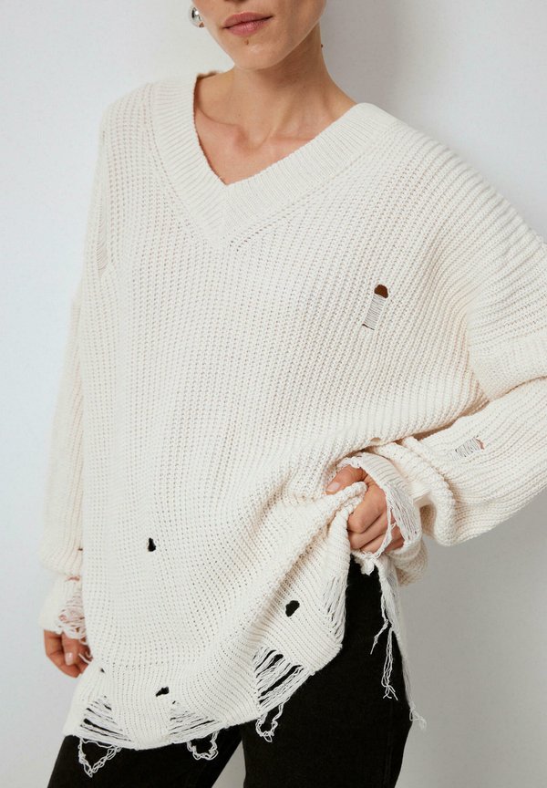V NECK DETAILED – Strickpullover – ecru