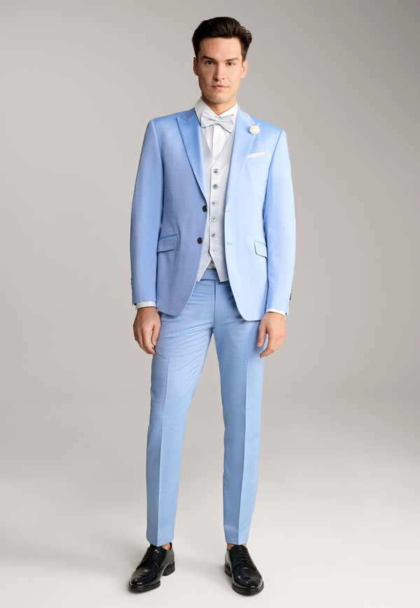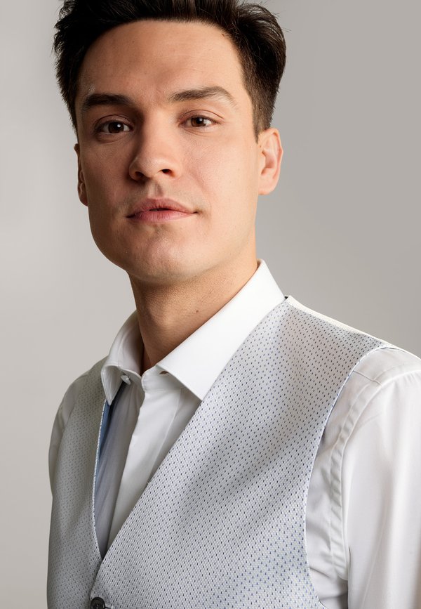 Weste – ecru hellblau gemustert