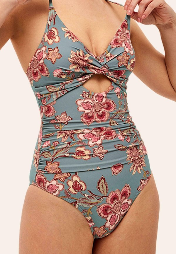 WICKELOPTIK BAUCHWEG RAFFUNGEN ZIERAUSSCHNITTEN – Badeanzug – retro blumenmuster