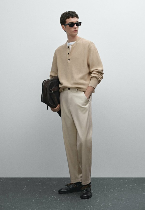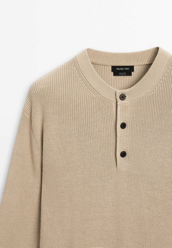 WITH BUTTONED NECK – Strickpullover – beige