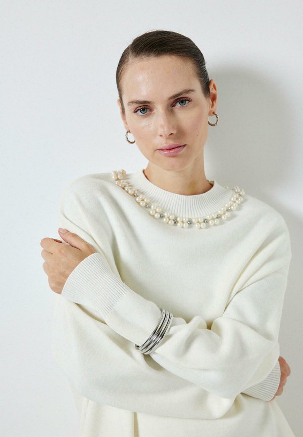 WITH PEARL COLLAR – Strickpullover – ecru