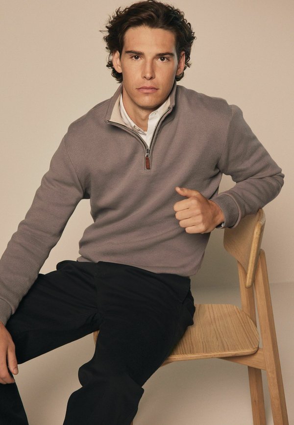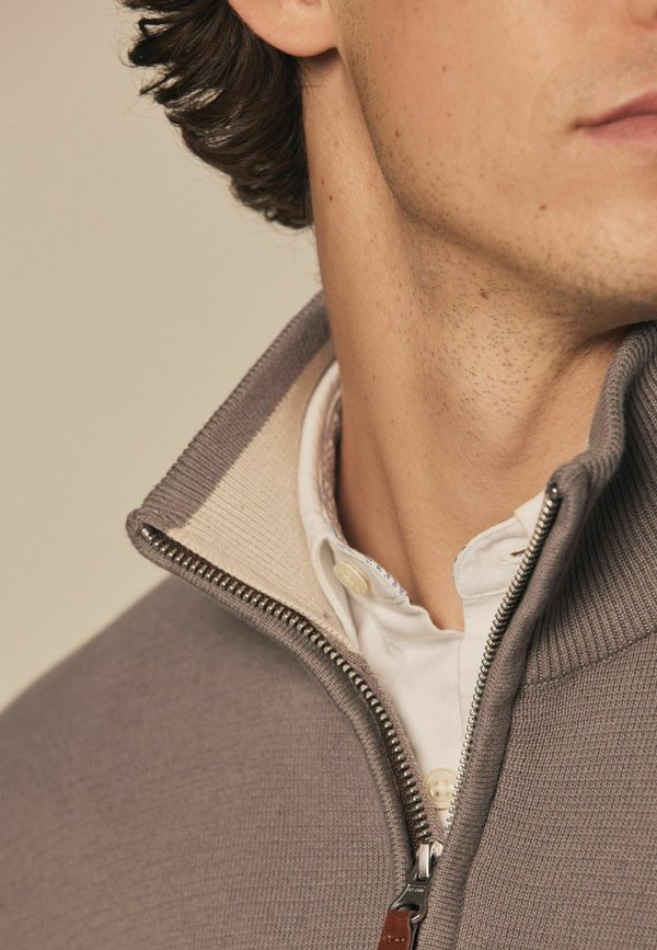 ZIP NECK REGULAR FIT – Strickpullover – mushroom